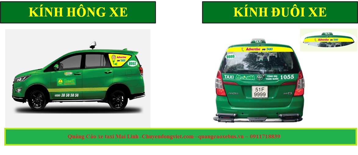 Các vị trí quảng cáo trên xe taxi Mai Linh